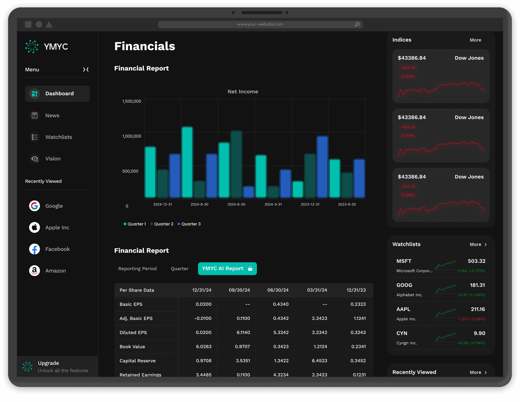 Professional real-time financial data terminal
